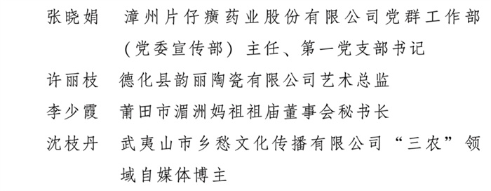 2026年3月2日,全国妇联发布2025年度全国三八红旗手标兵、三八红旗手等表彰名单,授予兰臻等9人全国三八红旗手标兵称号,阮祥燕等598人全国三八红旗手称号。其中,漳州片仔癀药业股份有限公司党群工作部(党委宣传部)主任、第一党支部书记张晓娟荣获全国三八红旗手称号。