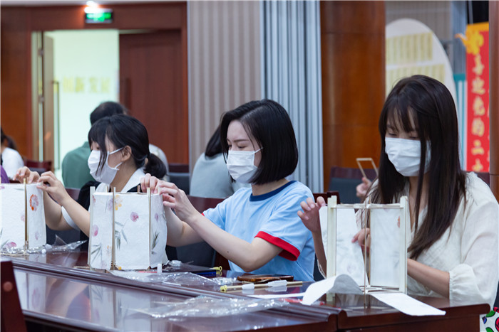 随后,现场工作人员向大家介绍了手工制作花灯的流程,将材料包分发后带领职工共同完成花灯的制作,现场有用颜料绘画出创意的月球灯,也有耐心组装精致的传统花灯,每一个花灯都拥有其独特的寓意,大家开发了动手能力和想象力,结合时代潮流体会到了浓浓的中国情。