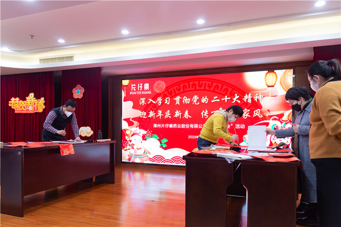 “爆竹声中一岁除,春风送暖入屠苏”。为深入学习贯彻党的二十大精神,弘扬中华民族优秀传统文化,丰富职工节日文化生活,2023年1月12日,片仔癀药业公司党委开展“迎新年庆新春 传万代好家风”的新春庙会活动,向职工传递新春祝福,展现积极向上的精神风貌。