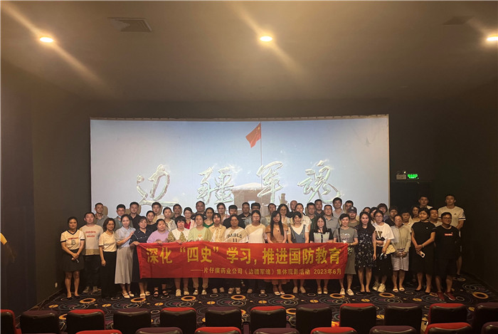为学习贯彻习近平新时代中国特色社会主义思想和习近平强军思想,2023年6月7日,片仔癀药业公司党委开展“深化‘四史’学习,推进国防教育”主题活动,组织党员集中观看电影《边疆军魂》,进一步增强职工国防观念、提高职工国防意识,推进“四史”学习教育走深走实。