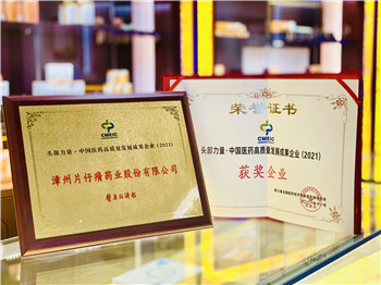 大会期间,片仔癀药业荣获“头部力量· 中国医药高质量发展成果企业(2021)奖”、 “头部力量· 中国医药高质量发展成果品牌(2021)奖”、“2021 医药互联网创新发展领潮企业奖”,斩获多项殊荣 。