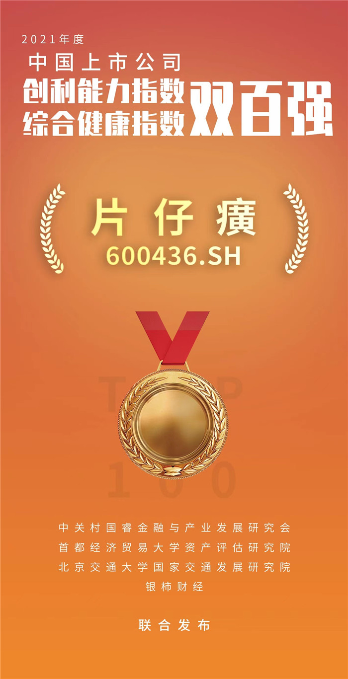 9月21日,由新华网、浙江日报报业集团联合主办的“中国上市公司年会系列活动暨第二届中国资本市场高质量发展峰会”在钱塘江畔落幕。峰会以“创新引领 价值重构”为主题,旨在为上市公司探索高质量发展路径把脉开方。会上发布了《中国上市公司健康指数报告(2022)》(以下简称“报告”),同时揭晓了基于健康指数产生的“2021年度中国上市公司综合健康指数百强”“2021年度中国上市公司创利能力指数百强”两大百强榜单,片仔癀均上榜。