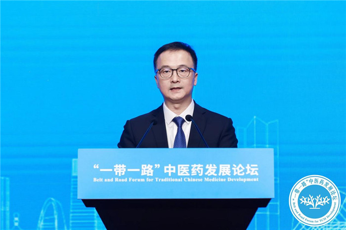 漳州片仔癀药业股份有限公司党委书记、董事长林志辉发表演讲(图片来源:“一带一路”中医药发展论坛秘书处)