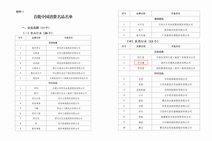 2025224日,根据《工业和信息化部办公厅关于分级打造中国消费名品方阵的通知》(工信厅消费函〔2024369号),经企业申报、省级工业和信息化主管部门初审推荐、专家评审,并征求生态环境部、商务部、应急管理部、市场监督管理总局、国家知识产权局、国家药监局、全国工商联、中国消费者协会等单位及有关行业协会意见,首批中国消费名品名单公示。片仔癀凭借深厚的历史沉淀、持续的创新活力以及广泛的市场影响力,成功入选中国消费名品体系医药行业“历史经典”名单。