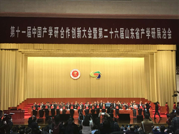 2017年11月12日,第十一届中国产学研合作创新大会在山东省济南市隆重召开,科学技术部部长万钢、中国科学院院长路甬祥及山东省省长龚正等出席,李克强总理及刘延东副总理对大会作出重要批示。大会审议并对2017年中国产学研合作示范基地、创新示范企业、创新示范镇等进行授牌,审议并对获得2017年中国学研合作创新奖、促进奖、工匠精神奖和突出贡献奖等的单位和个人进行表彰。我司荣获“中国产学研合作创新示范企业”,第一车间魏腾云荣获“中国产学研合作工匠精神奖”。