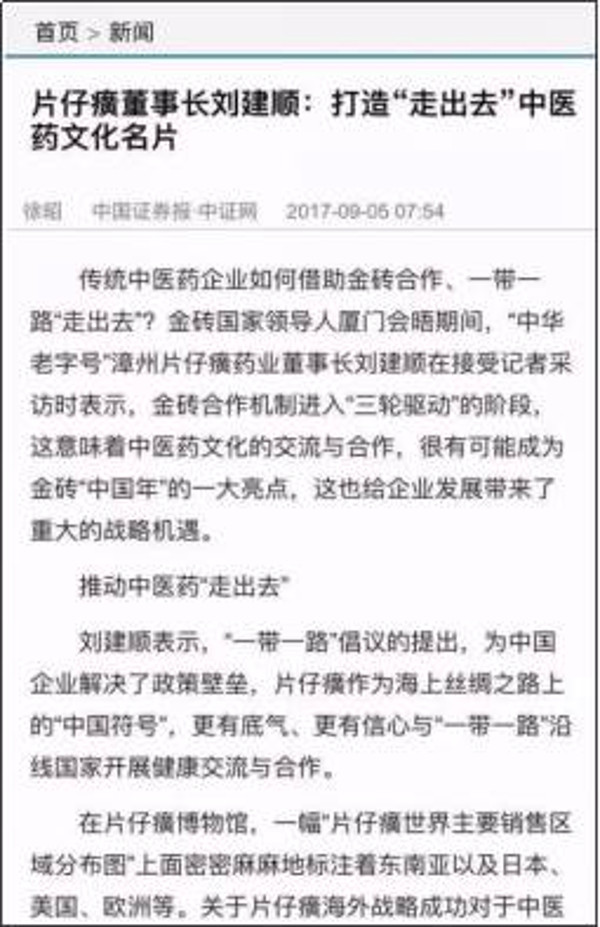 中国证券报:《片仔癀董事长刘建顺:打造“走出去”中医药文化名片》