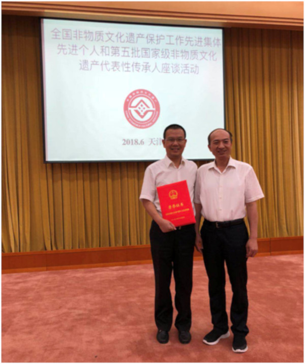 6月8日,由文化和旅游部非物质文化遗产司组织的全国非物质文化遗产保护工作先进集体、先进个人及第五批国家级非物质文化遗产代表性传承人座谈活动在天津市大礼堂隆重举行。国家文化和旅游部党组书记、部长雒树刚,各省、自治区、直辖市文化厅主管领导等出席了本次座谈会。