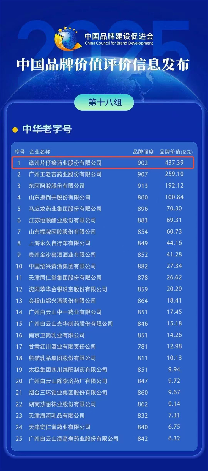 片仔癀以品牌价值437.39亿荣获中华老字号品牌价值第一名