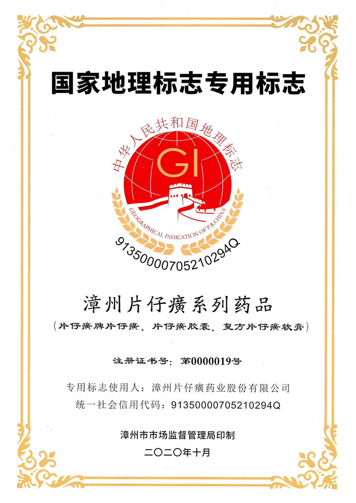 国家地理标志专用标志(漳州片仔癀系列药品)