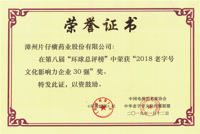 漳州片仔癀药业股份有限公司,是国家高新技术企业、中华老字号企业。