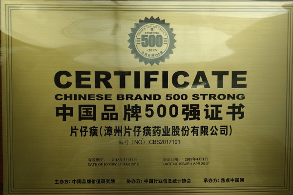 中国品牌500强证书(2017)