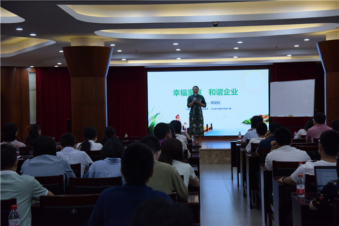 中秋佳节前夕,为传承和弘扬中华民族优秀传统文化,营造家庭幸福、企业和谐的浓厚节日氛围, 9月25日下午,漳州片仔癀药业股份有限公司开展了《幸福家庭,和谐企业》主题讲座活动,引导公司广大职工追求幸福美满的家庭生活。此次讲座是由漳州市总工会牵头主办的职工素质提升免费送教进基层项目,活动特邀木兰舍家文化传播有限公司创始人洪见红老师为广大职工授课。公司各部室、车间及子公司近80人参加活动。