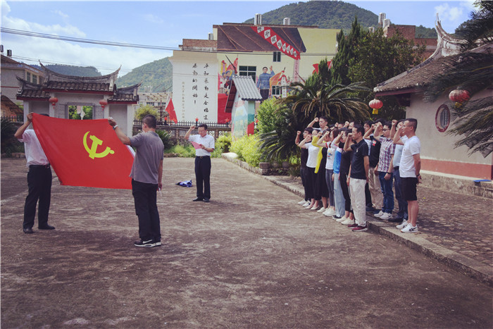 到达乡镇府后,公司扶贫队伍先与驻村干部、乡委了解长乐乡乐北村上半年扶贫、疫情等工作开展情况,就扶贫工作中存在的一些困难和问题进行了沟通交流;随后在县委党校讲师陈金营老师的精彩讲解下参观了平和暴动纪念馆,并在国旗下进行了一场庄严的宣誓活动。炎炎烈日下,新老党员整齐列队,紧握右拳,面向鲜红的党旗,重温入党誓词庄严宣誓,用最铿锵的誓词,最坚定的初心表达了对党和人民的无限忠诚,彰显片仔癀人爱党爱国情怀和干事创业热情。