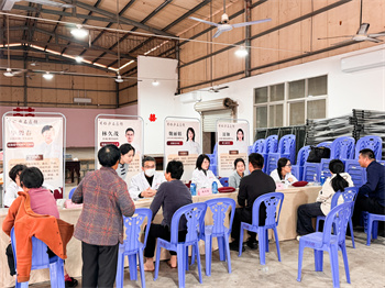 活动聚焦村民实际健康需求,特邀华碧春、林久茂、魏丽娟等名医领衔,与公司专家医师共同组成多学科团队,现场提供健康咨询、基础检测及疾病预防指导。现场同步设立健康体验区,提供养生茶饮与健康饼干试吃,让村民在了解健康知识的同时,亲身感受企业优质产品与服务。