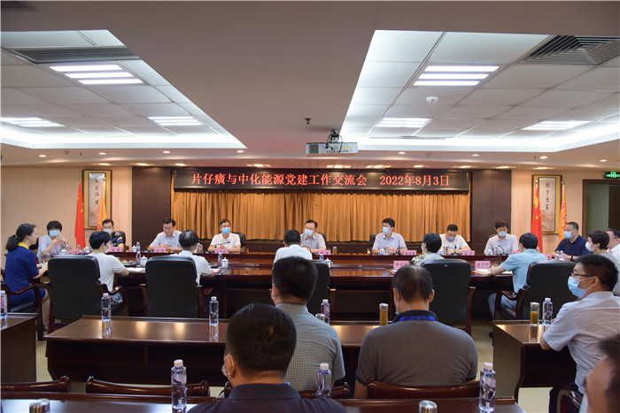 随后双方展开座谈交流。交流会上,公司党委副书记、总经理黄进明对中化能源公司领导一行的到访表示热烈欢迎,并重点介绍了公司党委自“十四五”以来,紧紧围绕公司“多核驱动、双向发展”新时期发展战略,通过不断探索,在实践中逐步形成的具有“片仔癀特色”的“12345”党建工作机制和“五双融合+五位联动”党建引领计划。