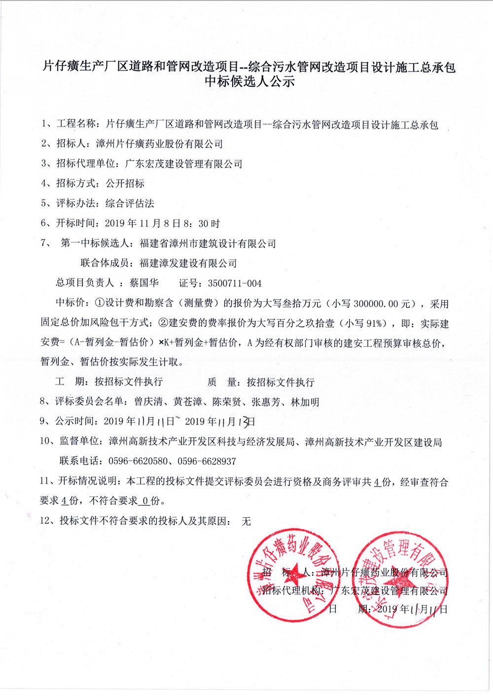 道路和官网改造项目设计施工总承包施工单位中标候选人公示